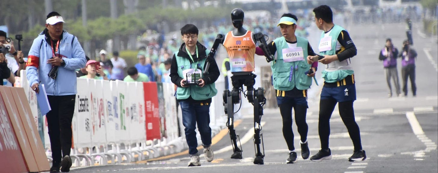 The robot Tien Kung Ultra won a half-marathon in Beijing after covering the 21 kilometers in about two hours and 40 minutes. Twenty robot companies participated in the race. [Source]